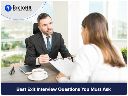 Good exit interview questions are a primary source for collecting and analyzing information that will help organizations improve their overall employee experience. This will help businesses reduce employee turnover and retain employees by changing policies. factoHR’s HR software includes an offboarding module that enables companies to gain valuable insights into their employees’ experiences and streamline the approval process for a seamless exit. Schedule a demo to know more!